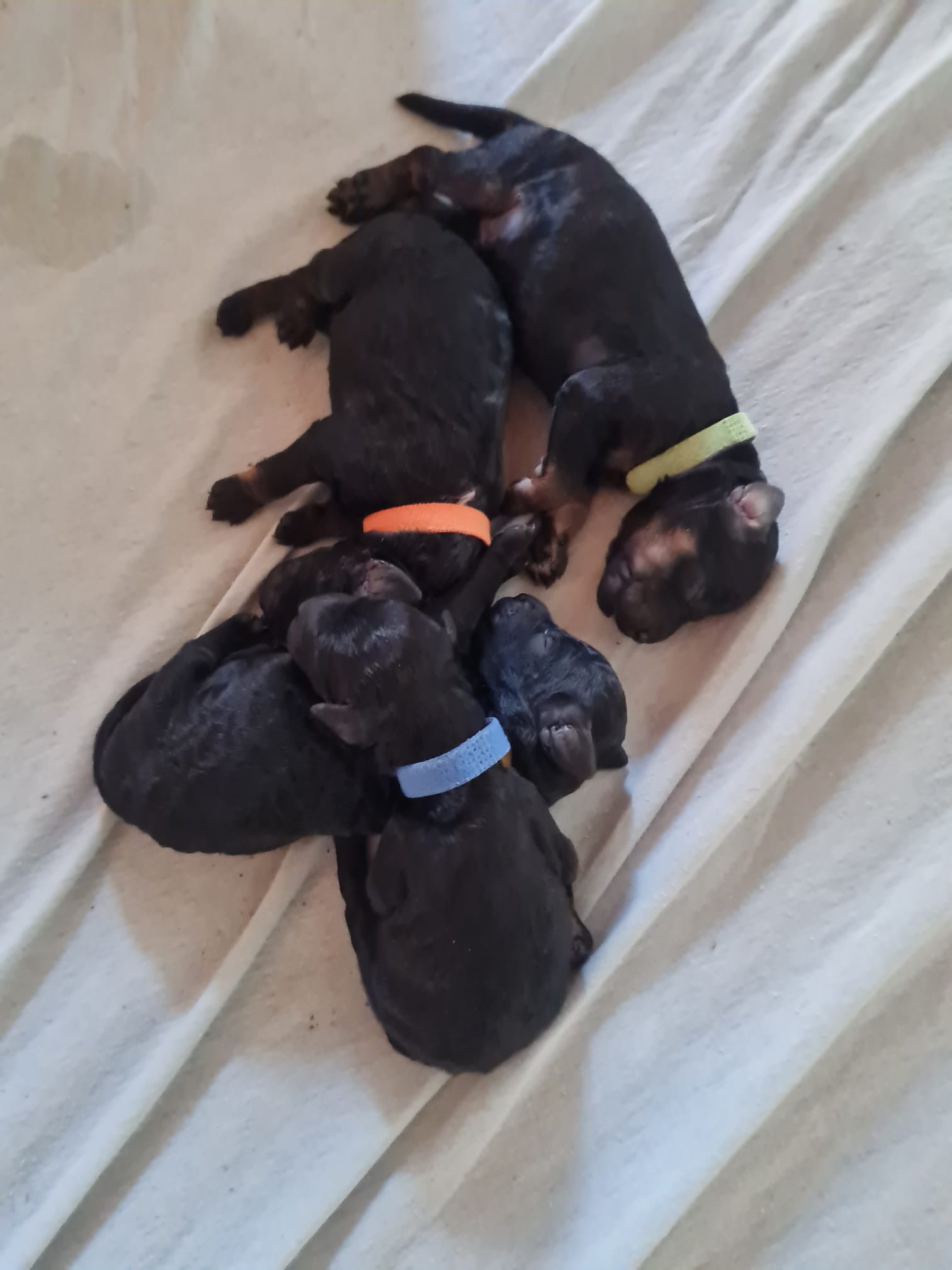 Unsere agile Hündin mit dem gelben Halsband ist als allererste auf ihren 4 Pfötchen gestanden. Sehr neugierige Sportskanone.